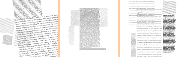 designed by me! InDesign pointers: Holding the shift key will constrain a box of type to a square (or, if already drawn, to its existing proportions). Type will stay the same scale within a type box unless you hold down the shift and open apple keys down simultaneously as you click and drag a corner of the box. Use the Find/Change operation under Edit to change all double spaces to single spaces, double hyphens to em dashes (option-shift-hyphen), and to use smart quotes and ligatures. Most of the operations you will need are under the Character and Paragraph panes. Put a hairline (.25 pt) stroke on an 8-inch box on the master page so when you print, your compositions will have a clear designed edge. |